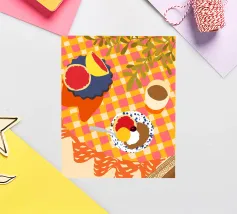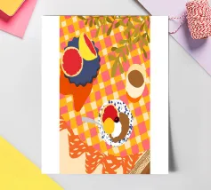 "Bloom and Brunch" unisce l'eleganza dei fiori freschi a una vivace scena di brunch, creando un'esperienza culinaria serena e immersa nella natura. Perfetto per aggiungere un tocco di calore e tranquillità a qualsiasi spazio.