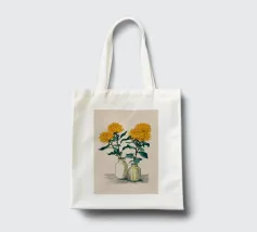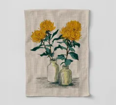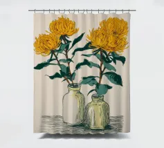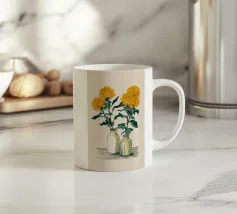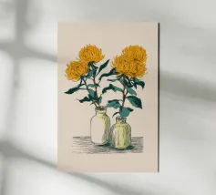 Elegante opera d'arte con vivaci crisantemi gialli in semplici vasi. Perfetta per aggiungere un tocco di bellezza floreale a qualsiasi spazio.