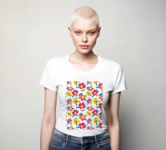 Aggiungete un tocco di allegria al vostro spazio con questo vivace motivo floreale caratterizzato da audaci fiori rosa, gialli e arancioni. Su uno sfondo bianco e nitido, emana un fascino fresco e giocoso.