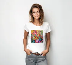 Una colorata stampa pop art con fiori in un vaso stilizzato, perfetta come decorazione murale moderna. I colori vivaci e il design grafico danno vita e stile a qualsiasi ambiente. Ideale per chi ama l'arte floreale con un tocco retrò.