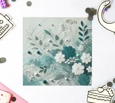 Il colore applicato crea una texture vivace, quasi tangibile, che infonde vita ai fiori. Nonostante le pennellate decise, il dipinto irradia una struttura calma che pone lo spettatore in un dialogo tranquillo con la natura. I colori turchese e bianco si armonizzano perfettamente e trasmettono una sensazione di pace e innocenza. Quest'opera d'arte è un'ode alla bellezza tranquilla e travolgente della natura, toccante nella sua semplicità e profondità.