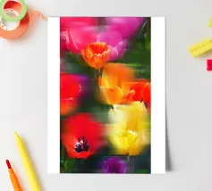Scoprite la magia del movimento e del colore con la nostra ultima stampa d'arte, "Vibrant Moving Flowers". Questo pezzo accattivante dà vita alle tonalità vibranti e ai movimenti dinamici dei tulipani, creando un'esperienza visiva ipnotica. Ispirata alla dolce brezza che attraversa un campo di tulipani, "Vibrant Moving Flowers" presenta una tavolozza di colori vivaci che si uniscono in uno spettacolo armonioso, illuminando qualsiasi interno con la sua vivacità unica. Lasciatevi ispirare dall'energia gioiosa e dalla creatività che questa stampa emana. Non lasciatevi sfuggire questa stampa d'arte mozzafiato!