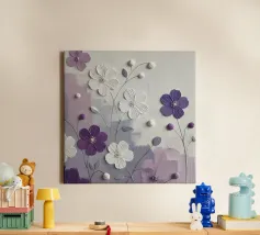 Il colore applicato crea una texture vivace, quasi tangibile, che infonde vita ai fiori. Nonostante le pennellate decise, il dipinto irradia una struttura calma che pone lo spettatore in un dialogo tranquillo con la natura. I colori viola e bianco si armonizzano perfettamente e trasmettono una sensazione di pace e innocenza. Quest'opera d'arte è un'ode alla bellezza tranquilla e travolgente della natura, toccante nella sua semplicità e profondità.