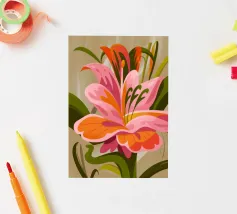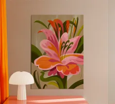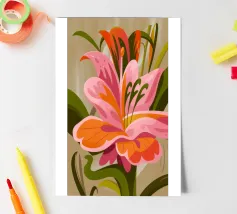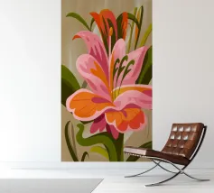 Un sorprendente primo piano di un fiore di giglio in piena fioritura, che mostra colori vivaci e intricati dettagli naturali.