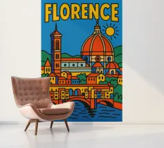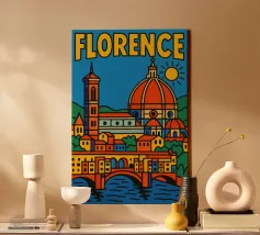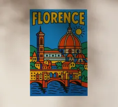 Entrate nel cuore vibrante di Firenze, culla dell'arte e dell'eleganza italiana. Questo poster illuminato cattura tutta la magia della città, con il suo maestoso Duomo, i ponti mitici e l'atmosfera solare: un invito a viaggiare nel cuore della Toscana e della storia.