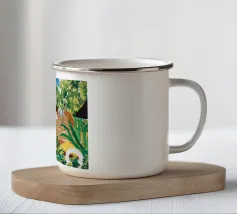 Questa opera d'arte presenta una scena subacquea con varie piante e creature marine. L'uso di blu e verdi profondi, insieme ai dettagli intricati della flora, crea un'atmosfera mistica e serena.