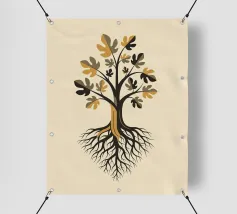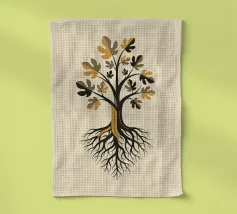 Un tributo senza tempo alla storia che ci forma. Questa elegante e potente opera d'arte reinterpreta il classico Albero della Vita con una sensibilità grafica moderna. Radici solide e profonde sostengono un fico rigoglioso: un bellissimo simbolo della famiglia, del patrimonio e della forza duratura che traiamo dalle nostre fondamenta. La sofisticata palette di marroni profondi e di oro caldo conferisce un'energia solida e rilassante a qualsiasi spazio. Questo pezzo è un centrotavola significativo ed elegante, una perfetta celebrazione dell'albero di famiglia e dei legami che lo uniscono.