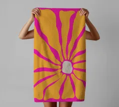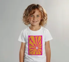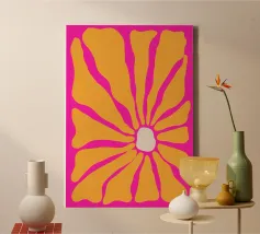 Arte floreale groovy retro, design floreale, colori dopaminici, fiore astratto