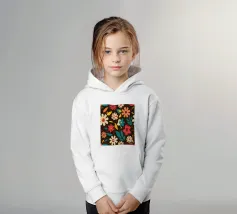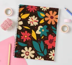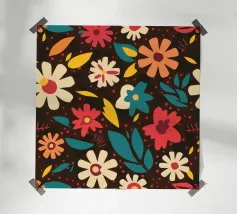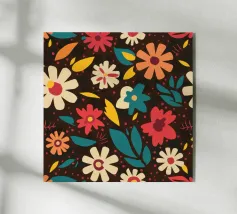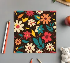 Un motivo senza cuciture di fiori stilizzati retrò nei toni caldi del crema, dell'arancio e del rosa su uno sfondo marrone scuro. L'aspetto è vintage e accogliente.