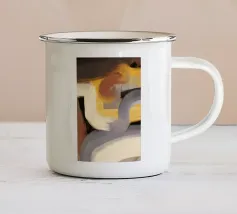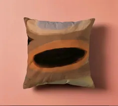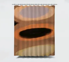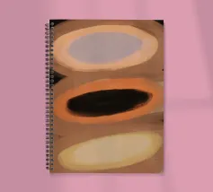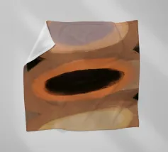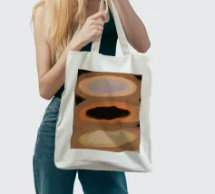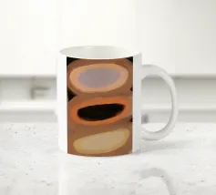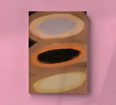 Tre forme ovali sono impilate verticalmente, ognuna con una tavolozza di colori distinta: viola e marrone chiaro, marrone scuro e arancione, giallo chiaro e crema. Lo sfondo è costituito da toni tenui della terra, che esaltano l'aspetto astratto della composizione.