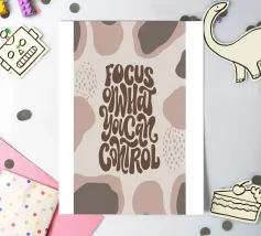Un promemoria per lasciar andare ciò che è fuori portata e concentrarsi su ciò che conta davvero. Questo disegno di ispirazione bohémien, con morbide tonalità pastello e forme organiche, incoraggia una mentalità di chiarezza, resilienza e pace interiore. Perfetto per creare uno spazio calmo e intenzionale.