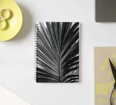 Un sorprendente primo piano in bianco e nero di una foglia di palma, che mette in evidenza i suoi intricati motivi e le sue trame, perfetti per un'estetica minimalista o botanica.