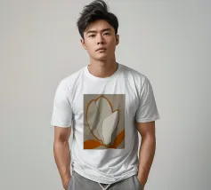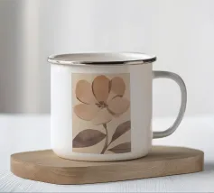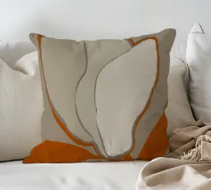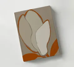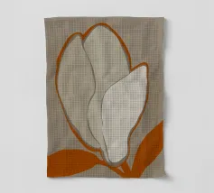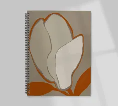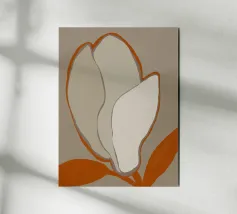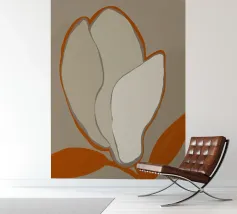 Questo motivo floreale mostra una forma astratta di fiore nei toni morbidi del beige e del crema, incorniciata da contorni chiari e caldi in terracotta. Le forme semplici e la palette di colori della terra conferiscono all'immagine un aspetto calmo e moderno. Nel complesso, l'illustrazione appare minimalista, organica e armoniosa.