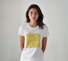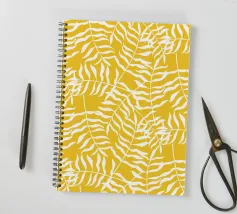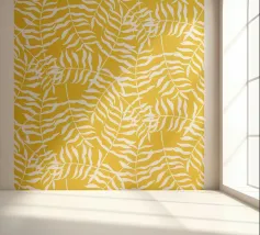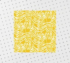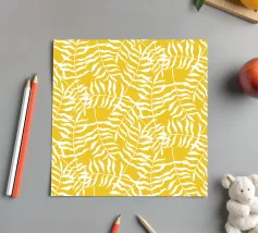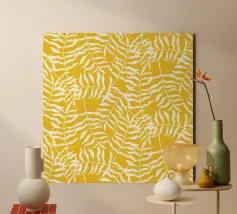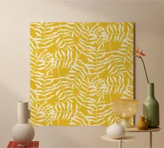 Questo vivace disegno presenta foglie di palma bianche su uno sfondo giallo brillante. Il contrasto netto crea un'atmosfera fresca e tropicale, perfetta per aggiungere un tocco di colore a qualsiasi spazio. Ideale per decorazioni, tessuti o accessori a tema estivo, questo disegno porta energia e un tocco giocoso alla vostra casa. Utilizzato per cuscini, tessuti o opere d'arte da parete, è un ottimo modo per infondere un'atmosfera moderna e naturale al vostro arredamento.