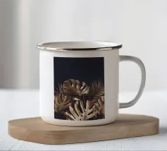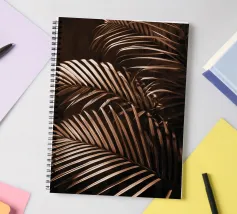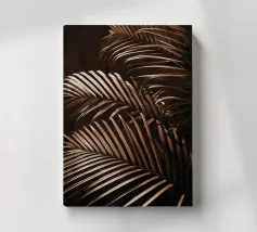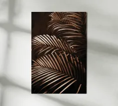 Un sorprendente primo piano di foglie di palma rese in ricche tonalità bronzee, che ne evidenziano le intricate trame. Questa sofisticata opera d'arte aggiunge calore ed eleganza organica agli interni moderni.