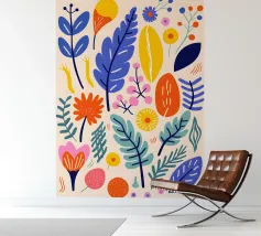 Un gioco colorato di foglie astratte, fiori e forme naturali che dona freschezza e vivacità a qualsiasi ambiente. I toni armoniosi del blu, del giallo, dell'arancione e del rosa rendono questo disegno ideale per cuscini, opere murali, magliette o tazze. Perfetto per gli amanti dell'arte naturale moderna e giocosa che apprezzano una decorazione elegante e stimolante.