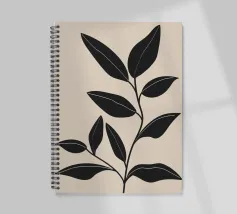 Elegante opera d'arte minimalista che presenta foglie di piante nere con contorni bianchi su un morbido sfondo beige, perfetta per un arredamento moderno.