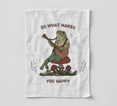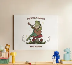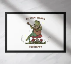 Questa vivace e giocosa opera d'arte raffigura un'allegra rana che strimpella la chitarra insieme alla citazione ispiratrice "Fai ciò che ti rende felice". La rana amante del divertimento, con il suo sorriso stravagante e l'atmosfera spensierata, incarna l'essenza della gioia e del seguire le proprie passioni. Che si tratti di musica o semplicemente di divertimento, questa opera d'arte ricorda con leggerezza di inseguire ciò che vi rende felici. Perfetto per una varietà di prodotti come magliette, tazze, quaderni e opere da parete, questo delizioso disegno aggiunge un tocco di umorismo e positività a qualsiasi spazio o oggetto, incoraggiando tutti ad abbracciare la propria felicità in modo divertente.