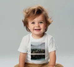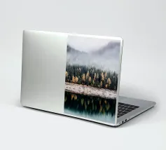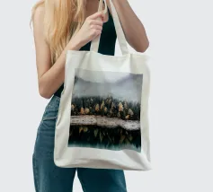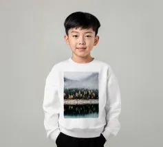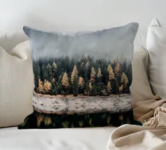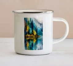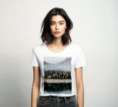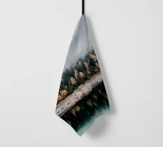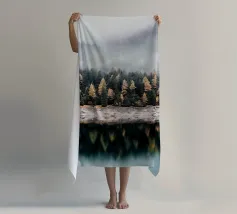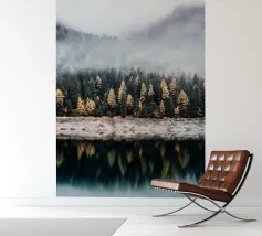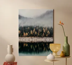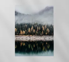 Scoprite la magica bellezza di una foresta nebbiosa in autunno. Le foglie dorate e gli abeti scuri si riflettono delicatamente nell'acqua calma, creando un'atmosfera di tranquillità e serenità. Questo disegno è perfetto per gli amanti della natura e del design che vogliono catturare il lato mistico dell'autunno. Che si tratti di un murale, di una tazza, di una cover per il cellulare o di un cuscino, questo motivo porta pace ed eleganza in ogni casa.
