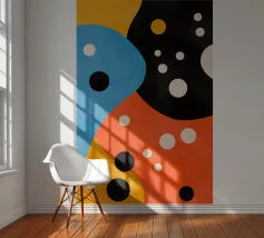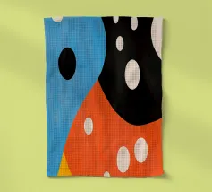 Un formaggio così grande: astratto e colorato e soprattutto con i buchi, proprio come dovrebbe essere un formaggio. Un gioco visivo di colori, superfici e forme. Questo motivo combina una composizione organica con il chiaro linguaggio del design moderno di metà secolo. Il blu, il giallo e l'arancione incontrano il nero profondo, intervallati da cerchi a contrasto che ricordano molecole, pianeti o bolle di sapone. Un design che sembra al tempo stesso retrò e futuristico e che trasforma qualsiasi stanza in un campo di tensione creativa. Se ci avete preso gusto, questo "formaggio" fa per voi.
