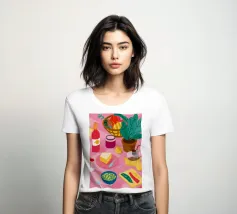 Una sofisticata natura morta di un blocco di formaggio, un bicchiere di vino rosso e fagioli edamame su una superficie rosa a fantasia. La composizione è moderna, elegante e rappresenta in modo chic uno spuntino semplice e saporito.