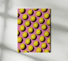 Questo motivo giocoso mostra limoni gialli e brillanti su uno sfondo rosa e combina una fresca atmosfera estiva con un design moderno. La combinazione di forme chiare, struttura geometrica e ombreggiature sottili conferisce al motivo profondità e leggerezza. Ideale come opera d'arte allegra per la cucina o come stampa d'arte estiva.
