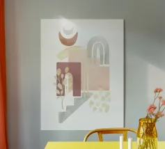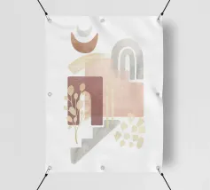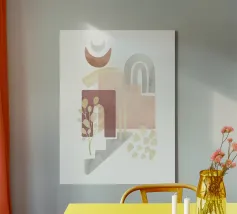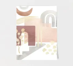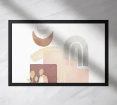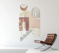 Un design elegante con forme astratte ispirate all'estetica boho. I caldi colori della terra e le delicate linee geometriche incontrano accenti botanici ed elementi organici. Questa composizione armoniosa conferisce a ogni ambiente un aspetto calmo e moderno e crea un'atmosfera accogliente ed elegante. Ideale per murales, cuscini, tazze o cover per cellulari, questo motivo dona un senso di creatività e serenità alla vostra casa. Perfetto per gli amanti dell'arte contemporanea e minimalista