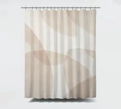 Disegno astratto organico con forme curve sovrapposte in varie tonalità di beige e marrone chiaro, che creano un effetto dinamico e stratificato. Ideale per progetti di arredamento e design moderni.