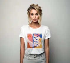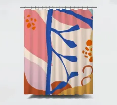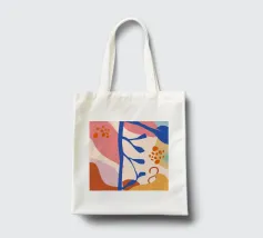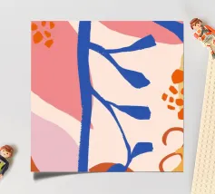 Una composizione astratta delicata e minimalista di forme botaniche stilizzate, tra cui foglie e bacche, in una morbida tavolozza di colori pastello. L'opera d'arte è serena, moderna e ha un aspetto leggero e arioso.