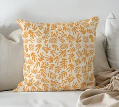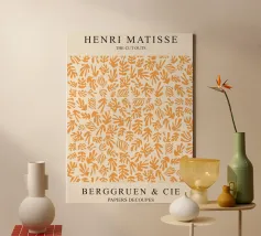 Un motivo ispiratore di forme astratte di foglie in un caldo arancione su uno sfondo color crema. Questo design minimalista e moderno aggiunge un'atmosfera elegante e artistica a qualsiasi stanza. Perfetto per chi cerca motivi naturali in un'interpretazione contemporanea. Ideale per prodotti come murales, cuscini, tazze o cover per cellulari: un'attrazione per gli amanti dell'arte e del design.