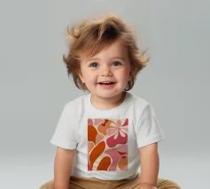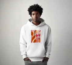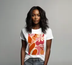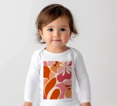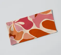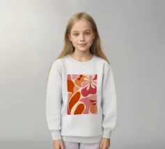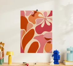 Una composizione floreale astratta con forme fluide e scorrevoli in una calda tavolozza di arancioni, rosa e rossi. Il movimento organico e i colori vibranti creano un'opera d'arte botanica sensuale e dinamica.
