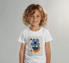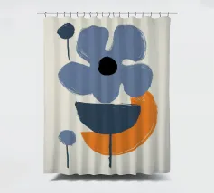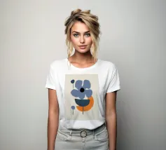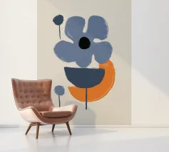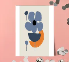 Una composizione minimalista e sofisticata presenta due fiori blu stilizzati su steli eleganti su uno sfondo neutro e colorato, incarnando il principio del "meno è meglio".