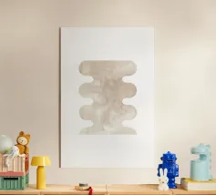 Aggiungete un tocco di stile nordico al vostro spazio con questo acquerello astratto che presenta una forma geometrica beige su sfondo bianco. Questo pezzo elegante completerà qualsiasi arredamento con il suo design semplice e pulito. Perfetto per chi apprezza l'arte minimalista.