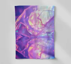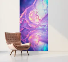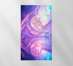 Delicate forme geometriche in vibranti tonalità di viola e rosa si riflettono su una superficie lucida, creando uno sfondo moderno e ipnotico per i dispositivi mobili, ideale per personalizzare le schermate.