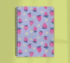 Le fragole a puntini con margherite su sfondo viola sono un disegno di tendenza. Aggiunge un tocco magico e vibrante a qualsiasi prodotto ed è particolarmente accattivante con la sua tavolozza di colori vivaci.