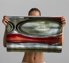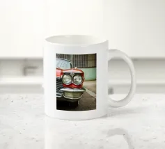Il frontale di questa classica auto rossa affascina con i suoi dettagli sorprendenti. L'iconico colore rosso brillante, abbinato a un design perfetto.