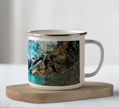 Il terreno accidentato contrasta con la superficie liscia e fluida del ghiacciaio, mentre le piccole figure umane alla sua base evidenziano l'immensa scala di questa meraviglia naturale. Un momento congelato nel tempo, che mostra la bellezza cruda e potente dei paesaggi glaciali della Terra.