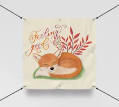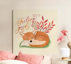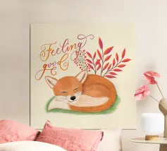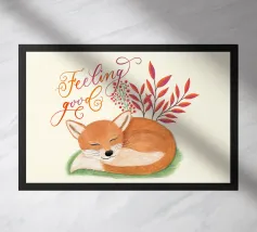 Una volpe felice e soffice si gode una bella giornata autunnale e sogna ad occhi aperti. Accompagnata da una scrittura immersa nei colori autunnali con divertenti anelli decorativi, bacche e foglie. Un motivo molto apprezzato da adulti e bambini. Chiunque ami le volpi, le lettere amichevoli e le belle immagini autunnali amerà questo simpatico motivo a volpe.