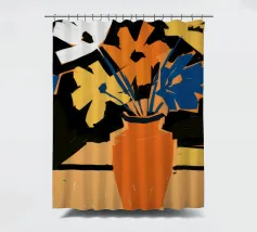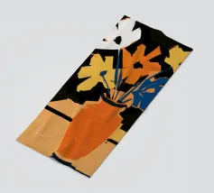 Un'opera d'arte astratta vibrante ed espressiva con una fusione di colori audaci di ispirazione fauvista come il magenta, l'arancione e il nero. Le pennellate e le forme energiche creano un'opera dinamica e appassionata.