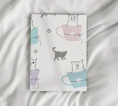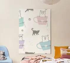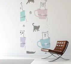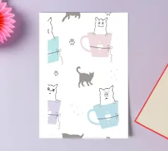 Gatti e caffè motivo giocoso. Adorabili gatti con tazze di caffè ideali per camicie, cuscini o carta da regalo.