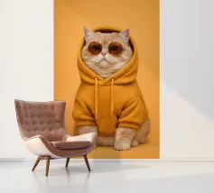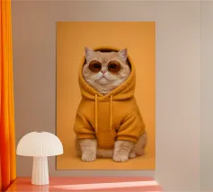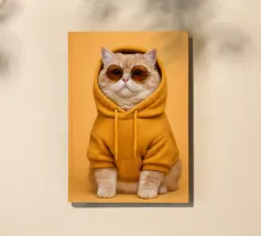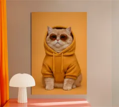 Portate uno stile caldo e una giocosa fiducia nel vostro spazio con questo ritratto pop art alla moda che raffigura un gatto cool vestito con un'accogliente felpa gialla con cappuccio e occhiali da sole rotondi. Lo sfondo giallo monocromatico crea un'estetica pulita e moderna, mettendo in risalto la morbida pelliccia e l'atmosfera streetwear di tendenza. Quest'opera d'arte unisce la carineria alla moda contemporanea, rendendola un pezzo perfetto per case moderne, camere da letto, studi, uffici o spazi creativi. Ideale per gli amanti dei gatti, della pop art e dell'arredo urbano, questo disegno aggiunge fascino, colore e personalità a qualsiasi parete.