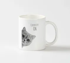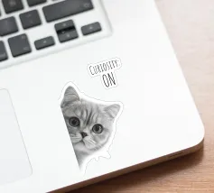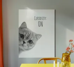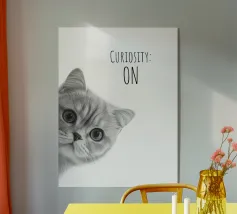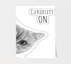 Uno sguardo di pura curiosità! Con il suo design chiaro e il suo slogan spiritoso, è il perfetto richiamo per chi ama il carattere e il fascino. Moderno, minimalista e ammiccante, è un must per gli amanti dei gatti e del design.