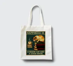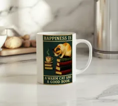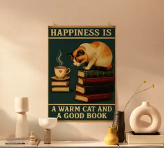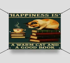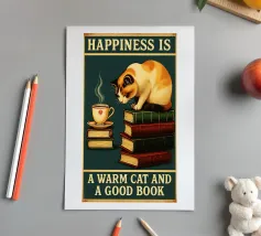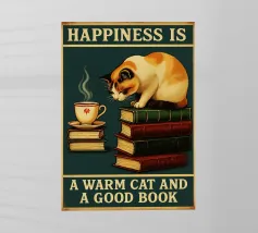 Gatto e libro La felicità è un gatto caldo e un buon libro