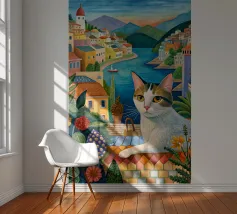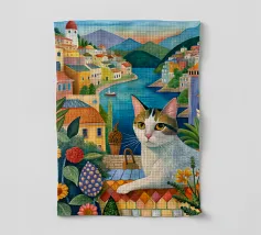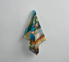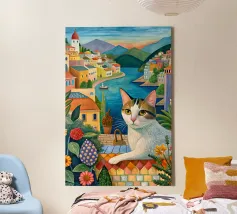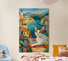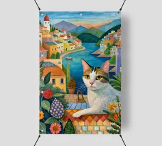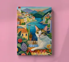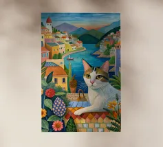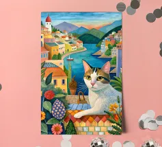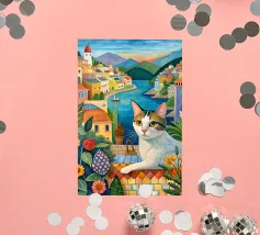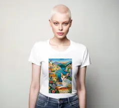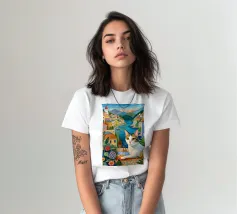 Un'immagine di arte digitale raffigura una donna con un pappagallo appollaiato sulla spalla. La donna ha i capelli castani e indossa una canottiera bianca. Un'ara blu e gialla siede sulla sua spalla. Sullo sfondo sono visibili foglie verdi tropicali. Lo stile generale è pulito e moderno, con un'atmosfera calda e invitante.