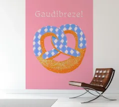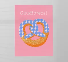 Questa illustrazione umoristica mostra un classico pretzel in un motivo a rombi bavarese con sale scintillante, elegantemente messo in scena su uno sfondo rosa. La scritta "Gaudibrezel" sottolinea il riferimento giocoso all'Oktoberfest e conferisce al motivo un fascino bavarese con un tocco moderno. Perfetto come omaggio di ispirazione pop art alla cultura e alla festa bavarese.