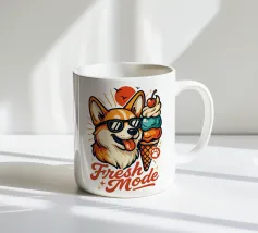 Iniziate la giornata in modalità Fresh! Questa vibrante illustrazione in stile retrò raffigura un adorabile corgi kawaii che sfoggia occhiali da sole e sorride con un'atmosfera estiva. Accanto al cucciolo felice, un cono gelato gigante trabocca di palline color pastello, soffice panna montata e una ciliegina rossa brillante in cima: la delizia solare per eccellenza! Il sole rosso e gli elementi di design vintage aggiungono un fascino nostalgico a questa maglietta giocosa e di qualità. Perfetta per gli amanti dei cani, dei gelati e di tutti coloro che vivono la vita con uno stile fresco e colorato. Toni vivaci, linee pulite: per farsi notare e sorridere.