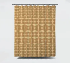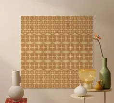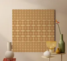 Un motivo geometrico ripetuto con forme di diamante interconnesse crea un senso di ritmo in una tavolozza di colori marrone e beige tenui. La simmetria e la ripetizione creano un'esperienza visiva armoniosa.