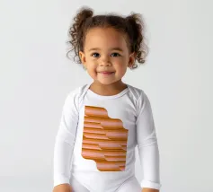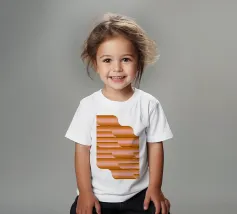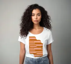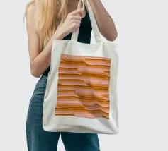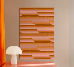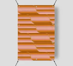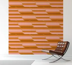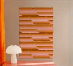 Elegante motivo geometrico a righe di ispirazione rétro, con strisce sfumate in marrone, arancione e rosa blush e linee ondulate in giallo oro.