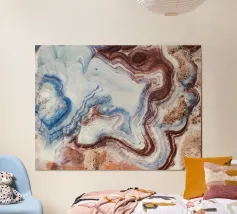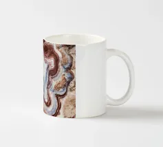 All'interno, le fasce di agata si alternano in strati di colore ipnotici, che vanno dai bianchi e grigi tenui ai ricchi viola, blu e marroni. Gli strati traslucidi dell'agata formano delicati disegni, ognuno dei quali è stato modellato dal tempo e dall'acqua ricca di minerali. Insieme, il geode e l'agata mostrano l'arte della natura, dove la pietra ordinaria diventa un tesoro di luce, colore e forma".