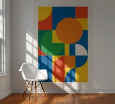 Un poster colorato nello stile del moderno design Bauhaus. Forme chiare, colori primari vivaci e una composizione equilibrata rendono questo motivo un richiamo visivo in qualsiasi spazio abitativo o lavorativo moderno. Ideale per gli amanti dell'arte geometrica.
